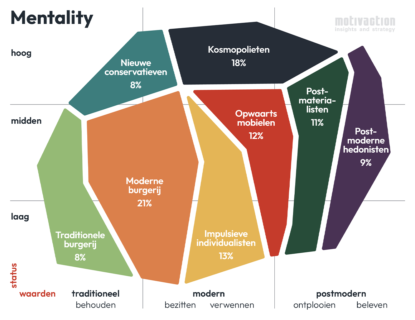 Hoe kan jouw organisatie de marketing- en communicatiestrategie zo nauwkeurig mogelijk aansluiten op de leefwereld van jouw specifieke doelgroep? Om die wereld te achterhalen heeft Motivaction zijn unieke waarden- en leefstijlonderzoek Mentality ™ ontwikkeld.