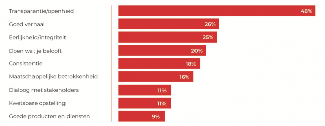 Eerlijkheid en doen wat je beloofd scoren daarna hoog.