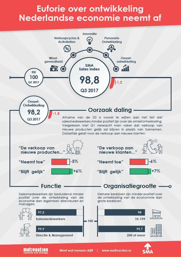 De SMA (Sales Management Association) heeft in samenwerking met onderzoeksbureau Motivaction ruim 350 salesprofessionals ondervraagd over de belangrijkste ontwikkelingen in het verkoopproces. In de eerste meting, over het eerste kwartaal van 2017, uitte het Nederlandse bedrijfsleven zich positief over de ontwikkeling en groei van de Nederlandse economie.