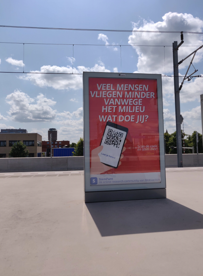 Veel mensen vliegen minder vanwege het milieu, wat doe jij? Een stelling die je misschien wel hebt zien hangen tijdens een treinreis door het midden van ons land. In de afgelopen weken hingen er namelijk posters van ons StemPunt-panel op verschillende treinstations in Utrecht.