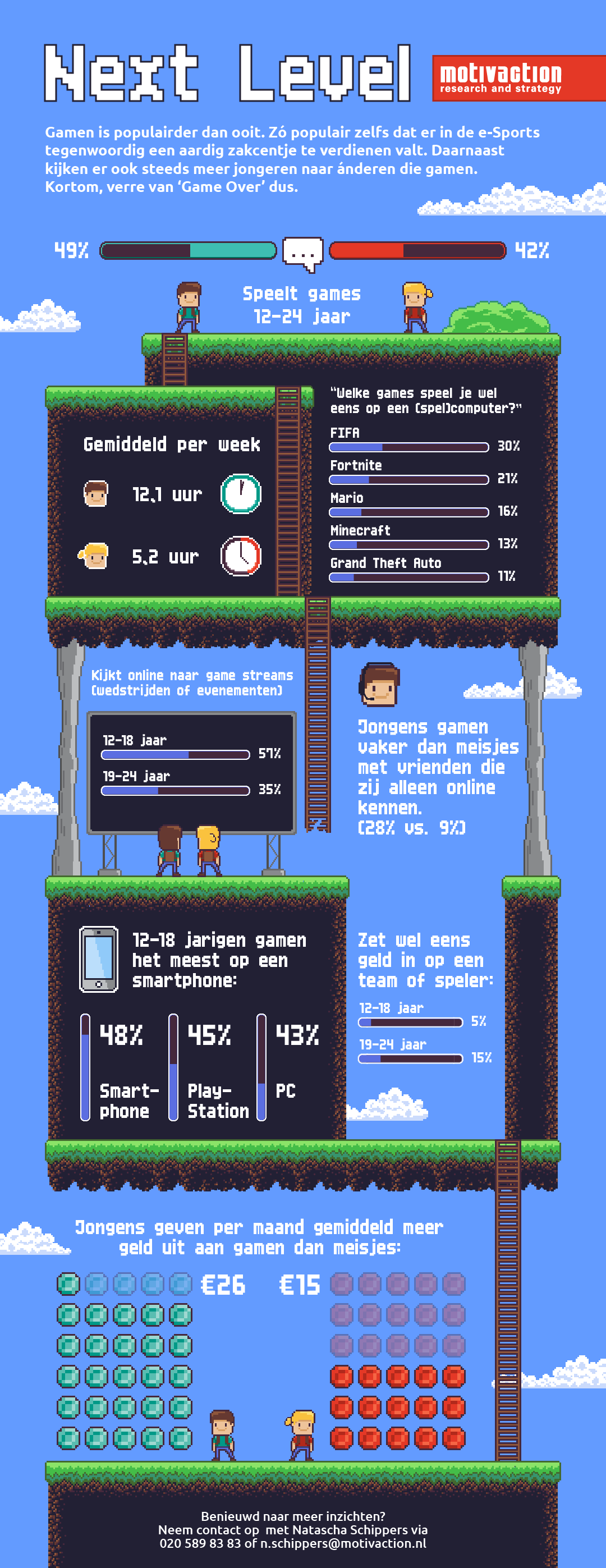 Van FIFA tot Fortnite en van CandyCrush tot Call of Duty: gamen is één van de populairste vrijetijdsbestedingen onder jongeren. Ze spelen daarbij niet alleen zelf, ook het kijken naar anderen die gamen groeit in populariteit. Hoeveel ze precies gamen? Welke spellen de voorkeur hebben? Dat en meer vroegen we de jongeren (12 – 24 jaar oud) zelf.