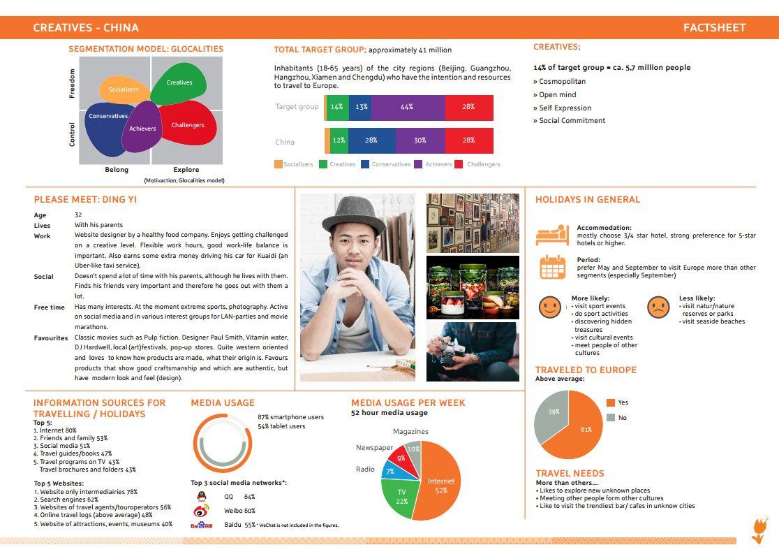In order to clearly personify and understand the Chinese demographic that is likely to visit Europe, we have created two personas: Ding Yi (creatives) and Zhang Xiang (achievers).